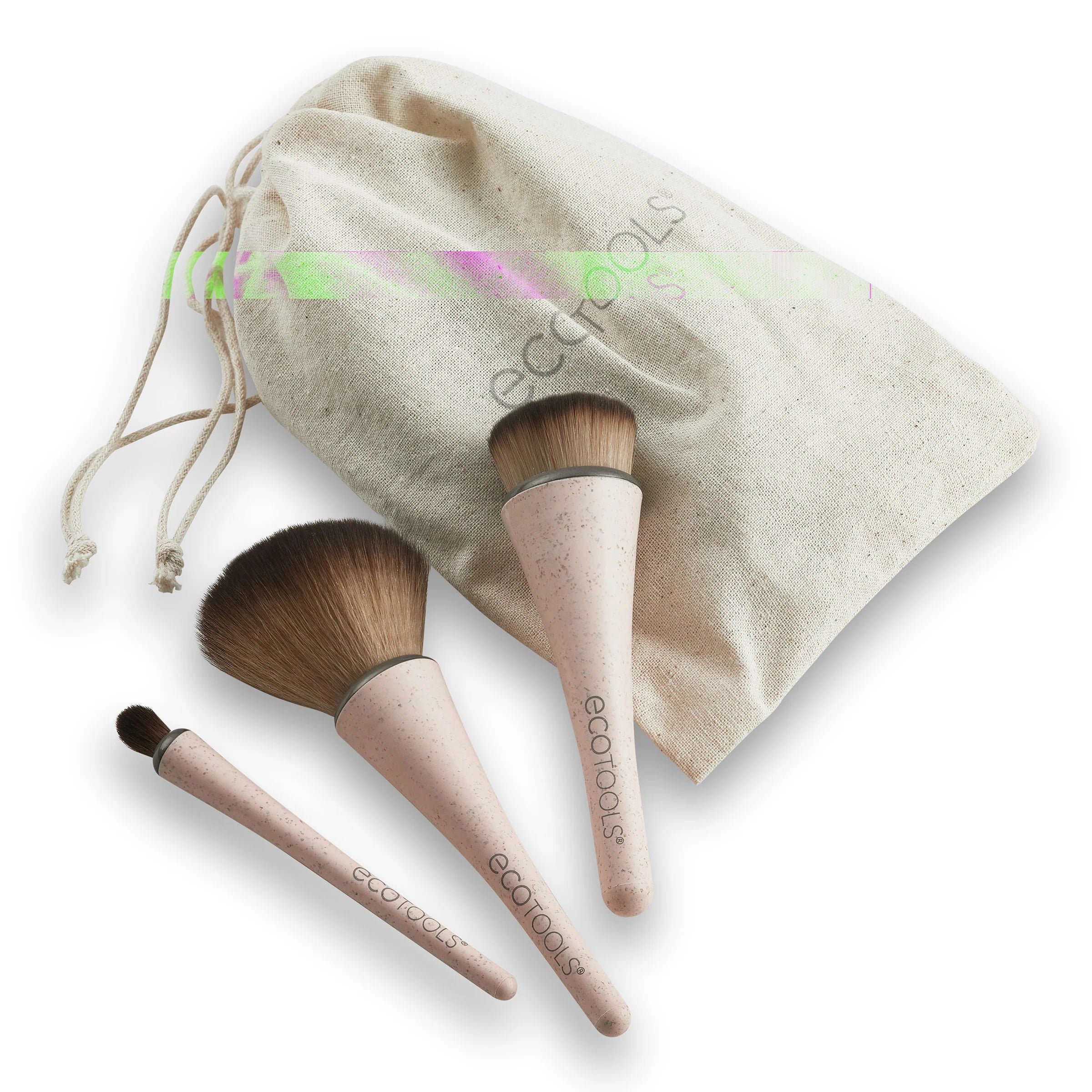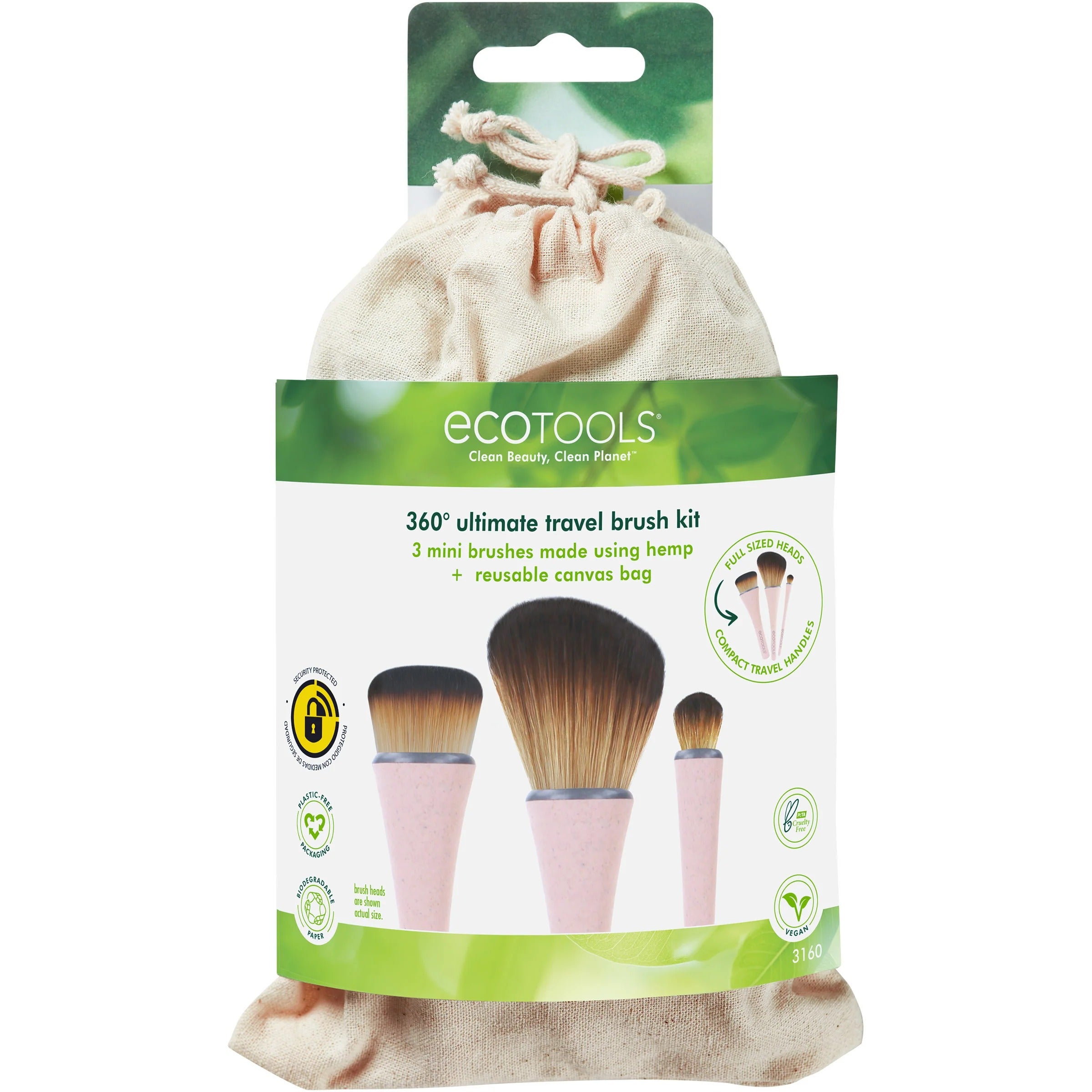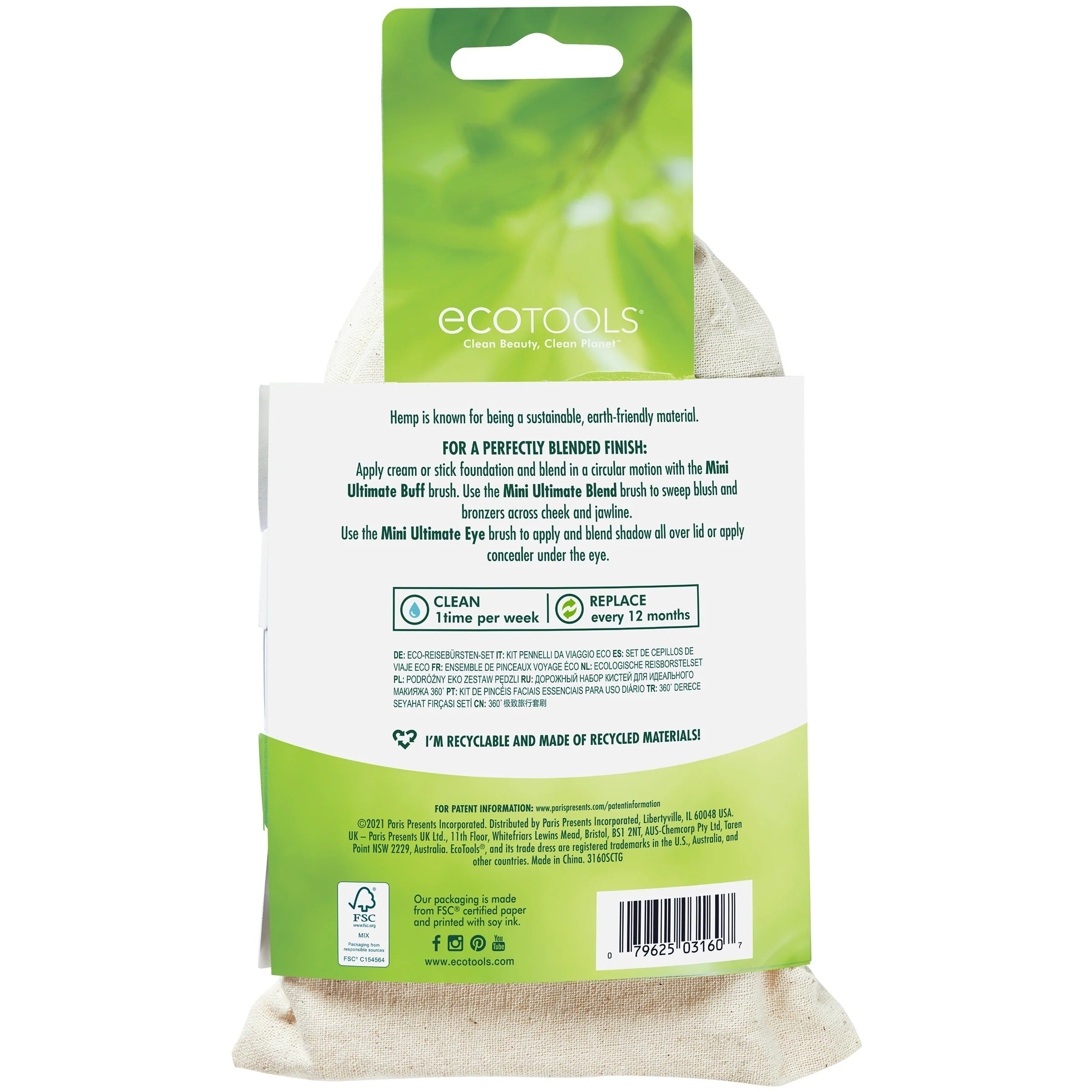 The EcoTools 360 Ultimate Compact Hemp Makeup Brush Set is your easy, go-to travel kit, for a perfectly blended finish. The three-piece kit includes the mini ultimate buff brush, the mini ultimate blend brush, our mini ultimate eye brush, and a reusable canvas bag to store your brushes for quick and easy storage. The classic EcoTools application with the same eco-friendliness in this set proves good things do come in small packages. The EcoTools Brushes feature our signature smooth, renewable bamboo handles, synthetic Taklon bristles, and sleek ferrules made with recycled aluminum for a clean beauty experience. Achieve a streak-free look with buildable coverage that is not animal-tested and completely vegan! Whether you use them for the eyes, blush, foundation or to travel with, EcoTools makeup brushes flawlessly help apply products to your face regardless of skin tone and type. Made from recycled and sustainable materials to make you feel as good as you look with a classic flawless application to match.