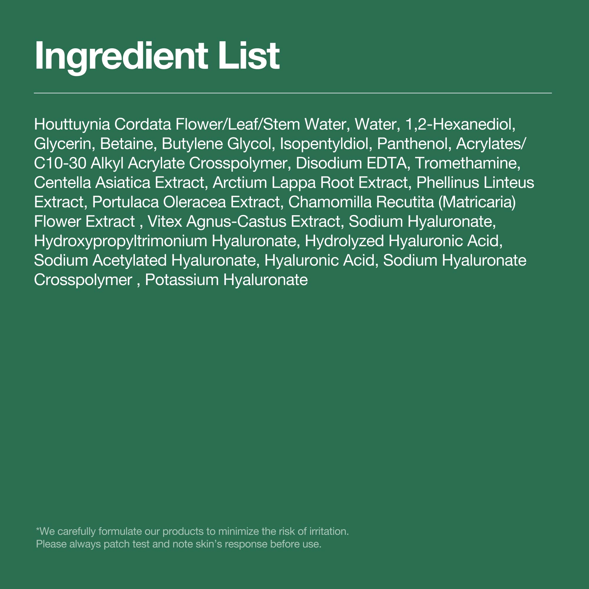 FORMULATED WITH NATURAL INGREDIENTS : Contains 77% Heartleaf Extract grown and haversted in Korea. Cruely free, Vegan, Paraben Free.