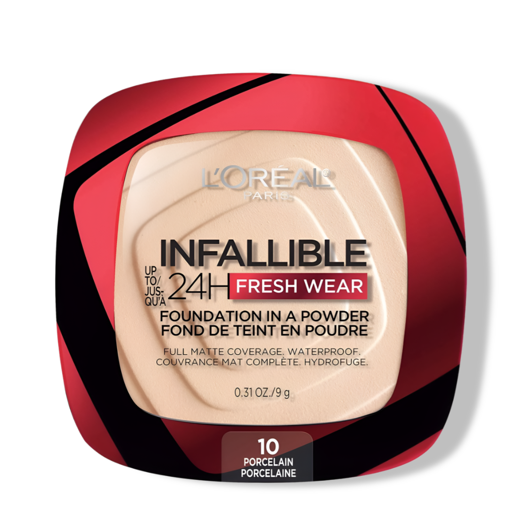 Experience flawless coverage that lasts all day with L'Oréal Infallible 24H Fresh Wear Foundation in Powder. This long-lasting, lightweight powder foundation provides full coverage without the heavy, cakey feel. With its breathable, fresh formula, it blends effortlessly into the skin for a smooth, natural finish that resists sweat, humidity, and fading for up to 24 hours. Perfect for on-the-go, this compact foundation ensures your skin looks fresh and radiant all day long.