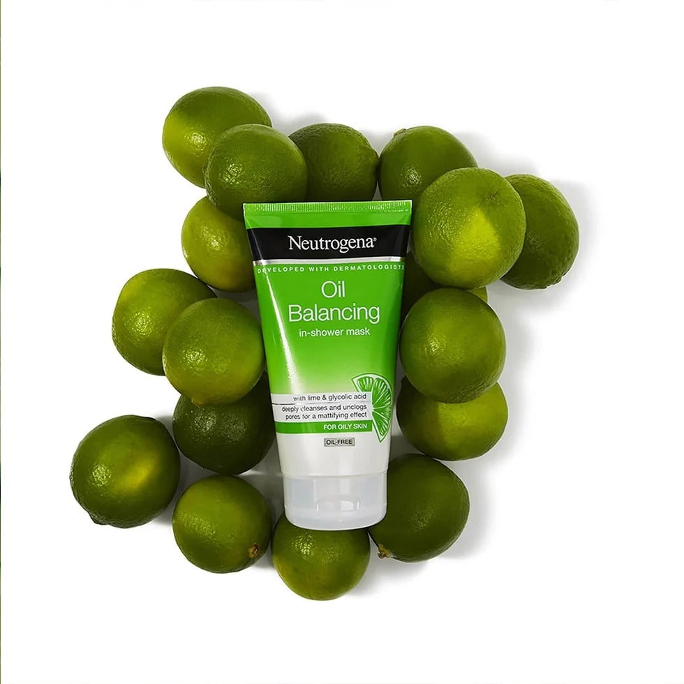NEUTROGENA® Oil Balancing In-Shower Mask with lime and glycolic acid deeply cleanses and rebalances oil for a visibly mattified complexion. The oil-free face mask works within 60 seconds as you shower, reacting with steam to provide a deep cleanse that unclogs and tightens pores. Developed with dermatologists, this uplifting in-shower mask is ideal for oily skin.