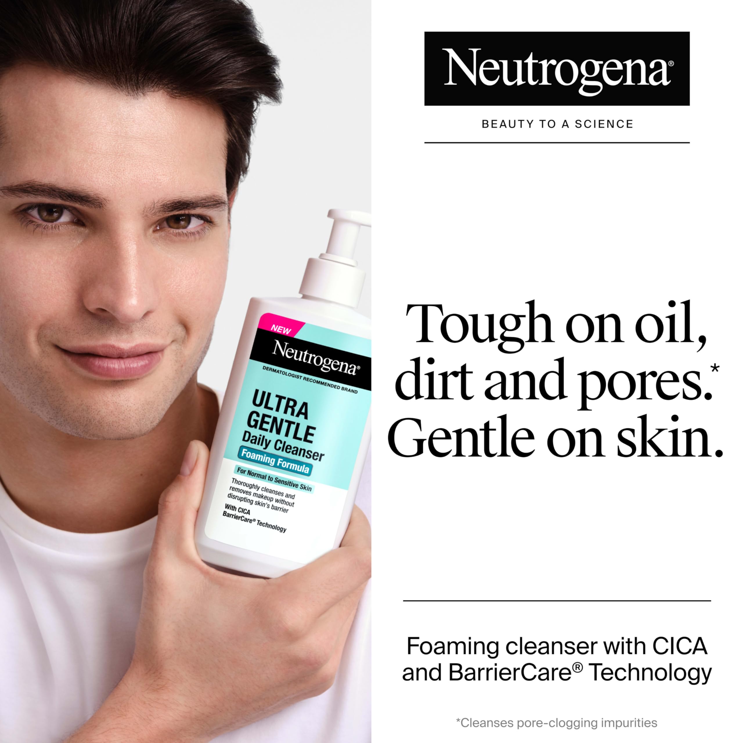 Neutrogena Ultra Gentle Foaming Facial Cleanser, Fragrance Free Hydrating Face Wash for Sensitive Skin, Daily Non Over Drying Makeup Remover, Hypoallergenic, Soap & Dye Free, Non-Comedogenic, 16 Fl Oz