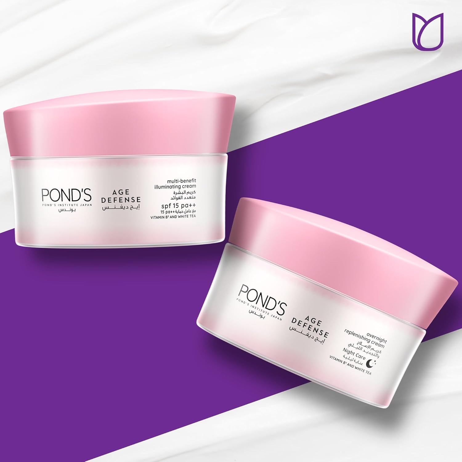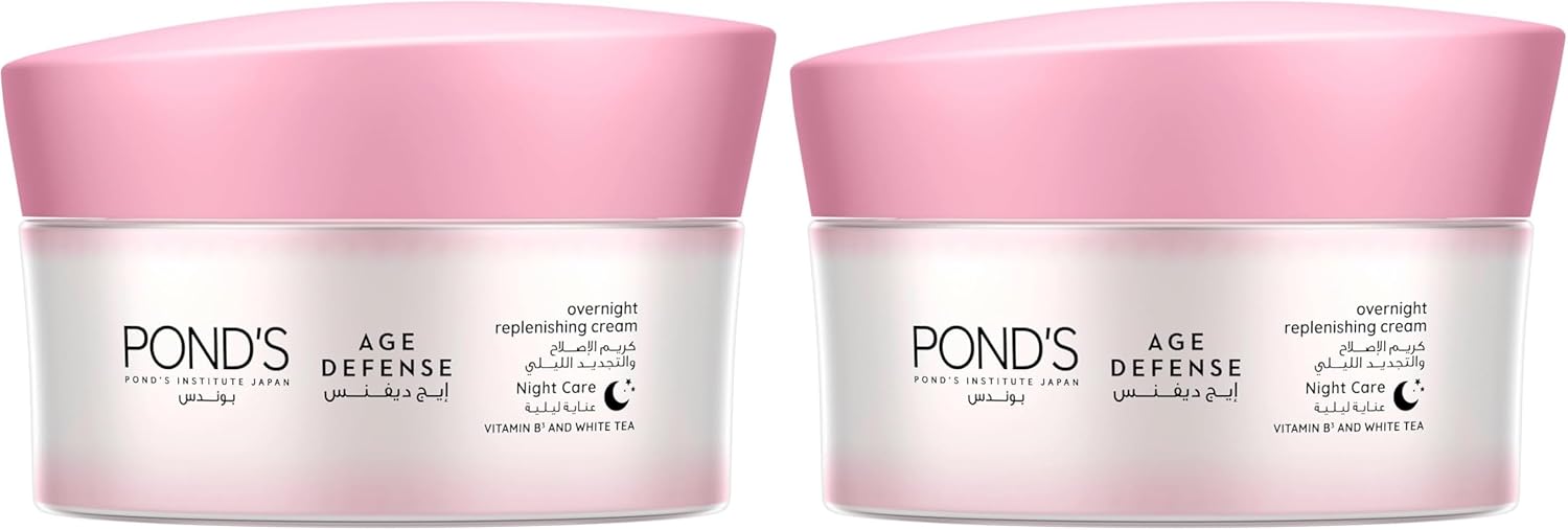 Pond's Age Defense is the first multi-benefit skin aging prevention cream from the Pond’s Institute. Pond's Age Defense Night Moisturizing Cream helps you recapture the radiance of your skin and enjoy glowing, luminous, youthful skin. It is enriched with the power of potent anti-aging ingredients: White Tea Extract and Vitamin B3 (niacinamide), which provide superior defense against skin aging and help reduce lines, wrinkles and age spots on the skin. This night face cream provides superior defense against skin aging and replenishes your skin overnight. Pond's Age Defense night cream intensively moisturizes and nourishes tired skin to help reduce the signs of aging and fatigue as you sleep.It is easy to apply. You can get radiant, youthful, and glowing skin in just 3 steps: 1-At night before you sleep, cleanse and tone skin 2-Apply Pond's Age Defense Night Cream all over the face and neck 3-Spread the cream in an upward motion. Pond's Age Defense night cream is suitable for all skin types. Store it in a cool