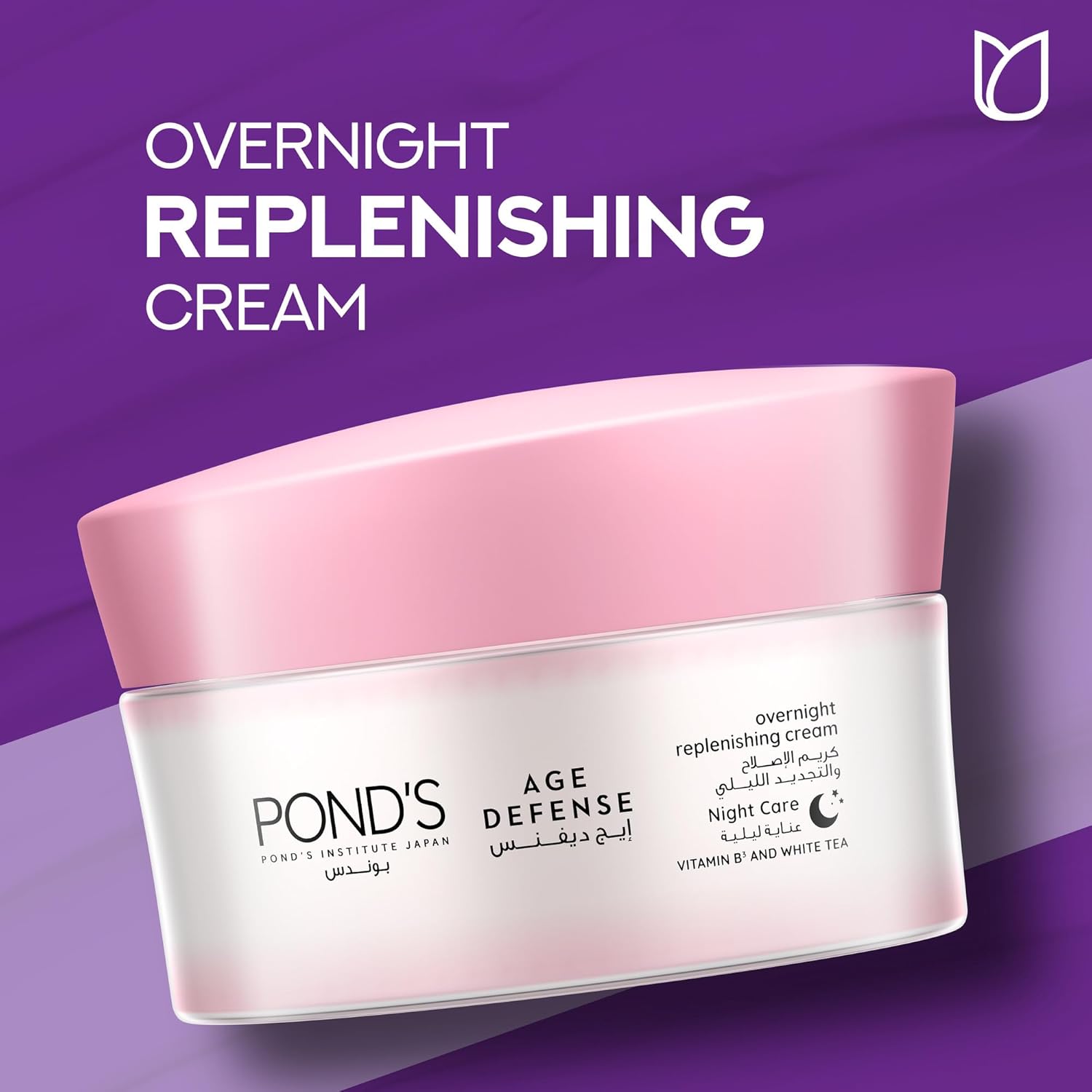 POND'S Age Defense, Overnight Replenishing Face Cream, with Vitamin B3 and White Tea, 50ml