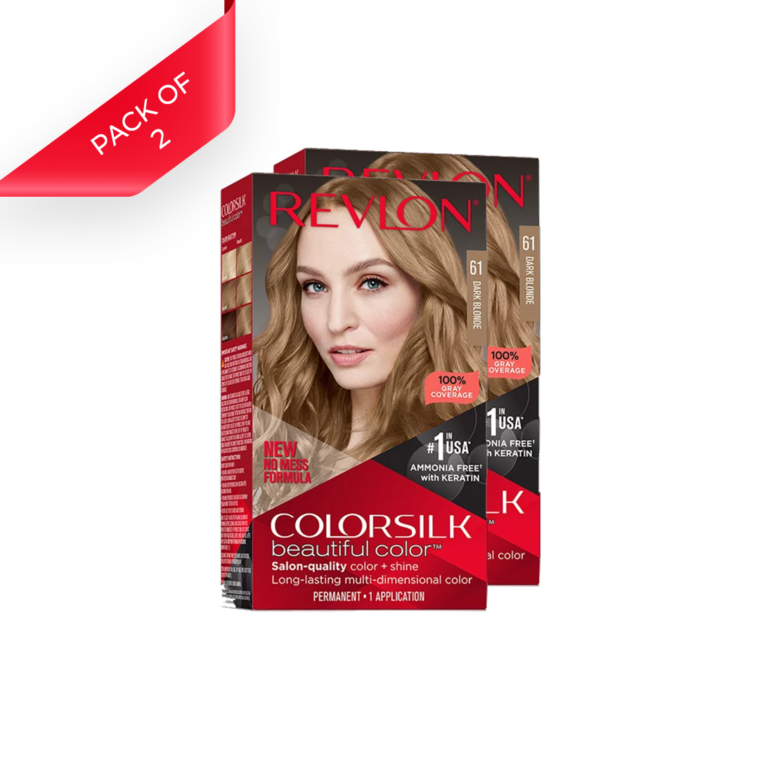 Revlon Colorsilk 3D Permanent Hair Color in Dark Blonde (061) is formulated to deliver natural-looking, multi-dimensional color with shine. The ammonia-free formula leaves hair looking healthy, soft, and vibrant while providing full gray coverage. Infused with nourishing silk proteins, it conditions hair during coloring for a smooth finish.
