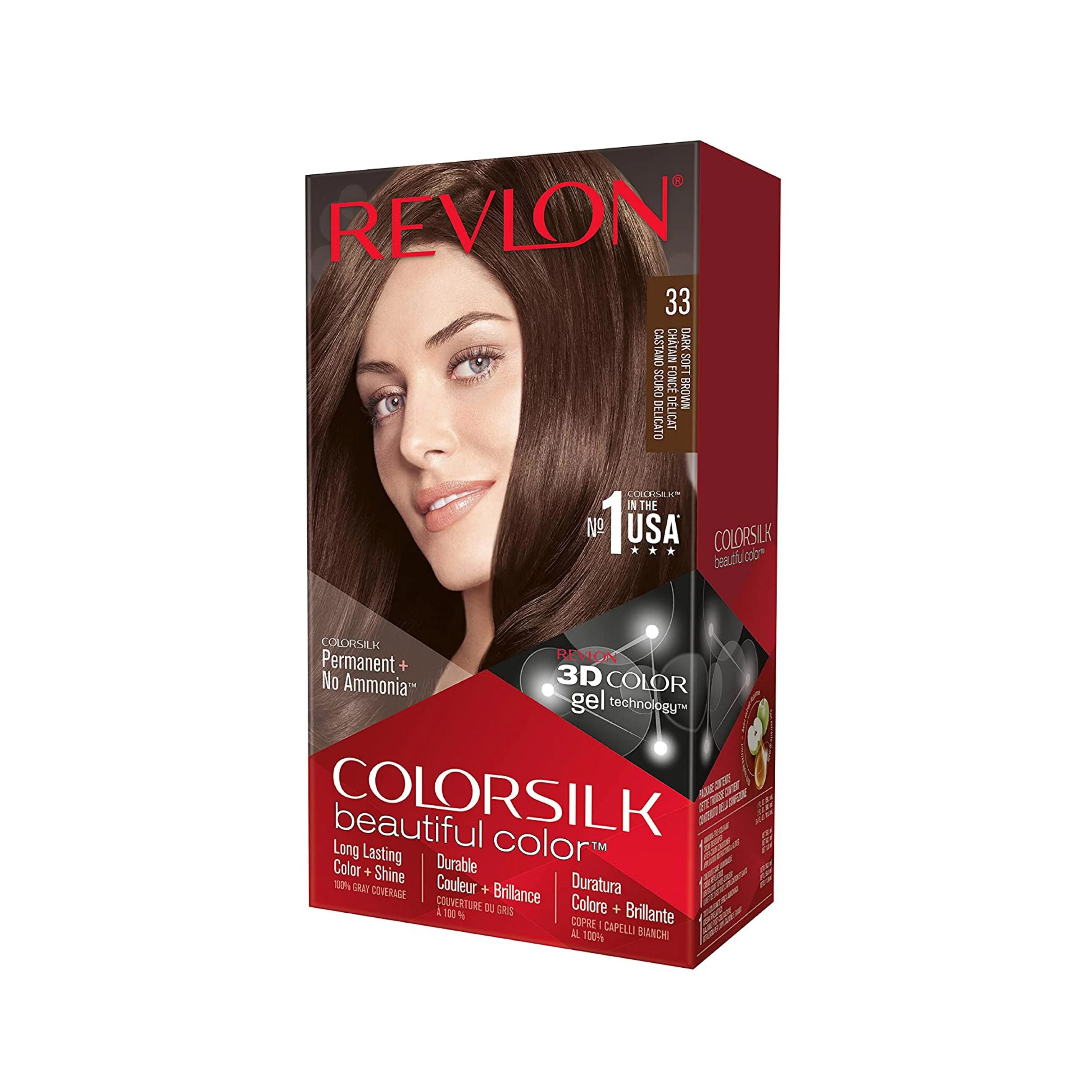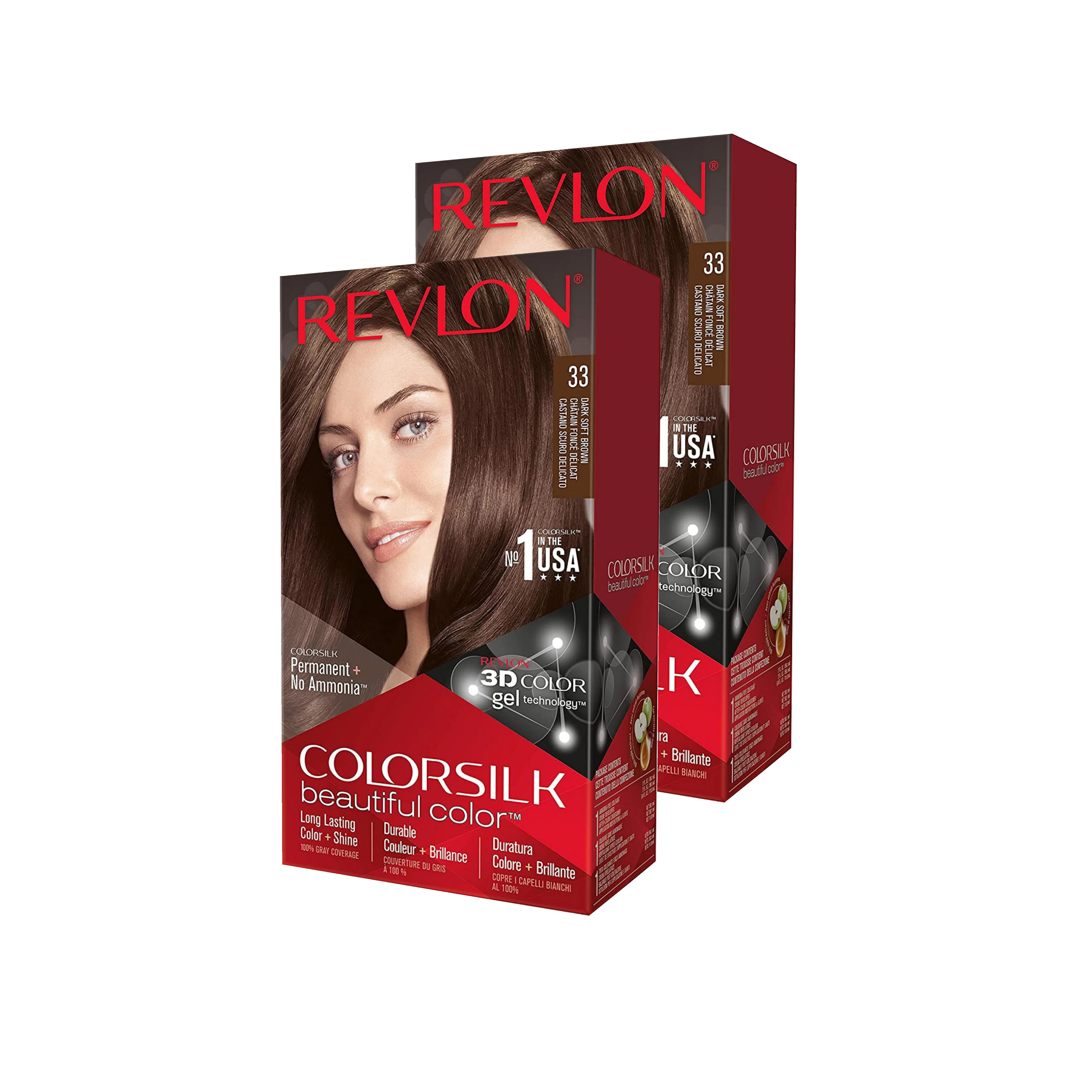 Revlon ColorSilk in 33 Dark Soft Brown delivers a rich, natural-looking brown shade with multi-tonal dimension. Powered by Revlon’s 3D Color Gel Technology™, it provides 100% gray coverage and vibrant, long-lasting color from root to tip.