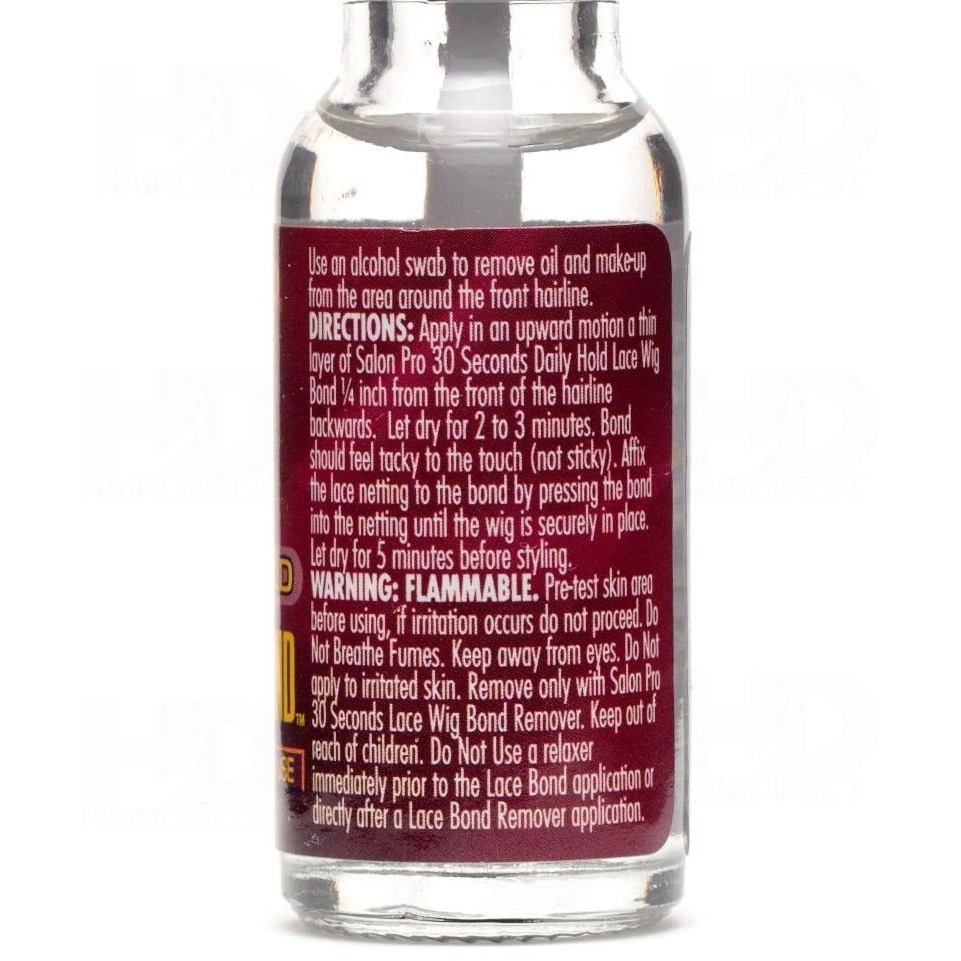 Salon Pro 30 Sec Extreme Hold Liquid Adhesive, Clear - 0.5 ounce Salon Pro 30 Seconds Extreme Hold Lace Wig Bond is a professional-strength salon adhesive for the serious hair-wearer. Extreme Hold is ready when you are, with quick, easy application and a confidence-boosting hold. Plan on an extended attachment when you use the Extreme Hold Lace Wig Bond. Depending on your body chemistry, your lifestyle, and the climate you live in, you’ll experience a 2 to 6-week bond. 30 Seconds Extreme Hold Lace Wig Bond is designed for lace-based hair systems and wigs and can be used with human or synthetic hair. Use it for frontal (partial) or full-cap systems. Extreme Hold removes easily with Salon Pro 30 Seconds Lace Wig Bond Remover Step 1 & Step 2 solvents. Retouch your bond at any time with Salon Pro 30 Seconds Lace Wig Touch-Up Bond. Salon Pro provides salon-tested products to do-it-yourself hair-wearers. Whether you wear custom hair systems, wigs or weaves, Salon Pro has attachment, styling, and maintenance products that shave time off of your hair routine. Try 30 Seconds Extreme Hold Lace Wig Bond in this .5oz brush bottle or the bigger 1oz bottle and leave a review on this page to tell us how it worked for you.