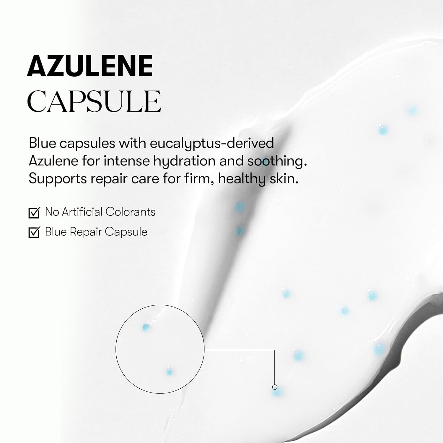 [BLUE AZULENE CAPSULE] The blue capsule contains azulene extracted from eucalyptus, delivering exceptional hydration and soothing effects. It provides repair care to strengthen the skin's condition.